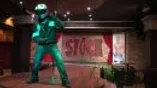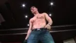 Hunky Ricky strips on stage while grabbing his 9 inch cock.