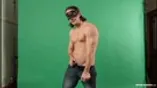 Muscular masked man Ricky strokes his big dick!!
