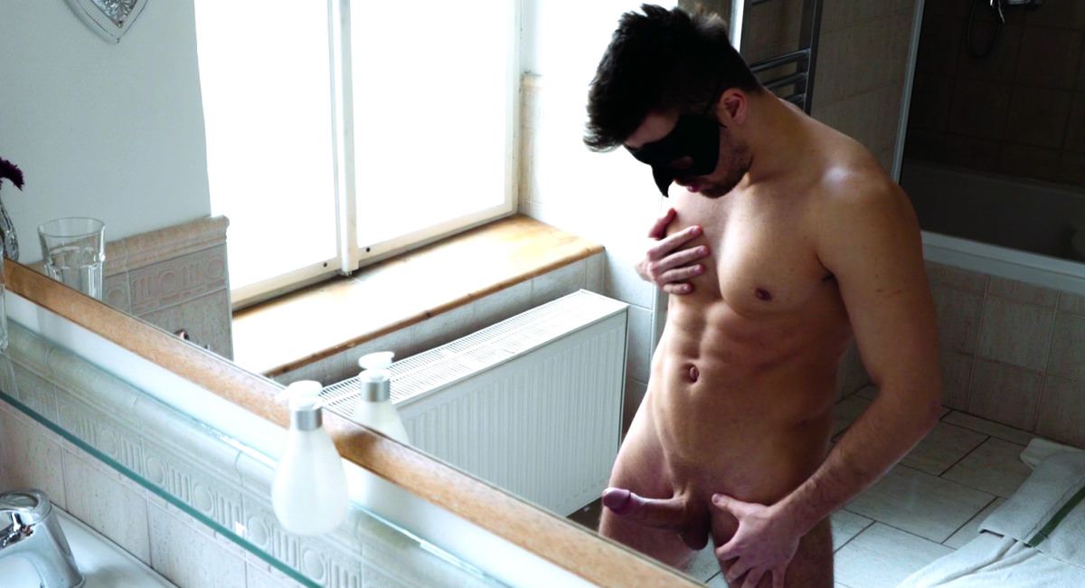 After a hard day at work, young Harry Paker stopped in the park to relax and look around before going back home. On his way, he found a mask on the ground, very similar to the one he saw on Maskurbate, one of his favorite websites. As soon as he put it on, he got very excited and started to play with his thick cock while watching himself in the mirror, imagining he was performing in front of a camera.