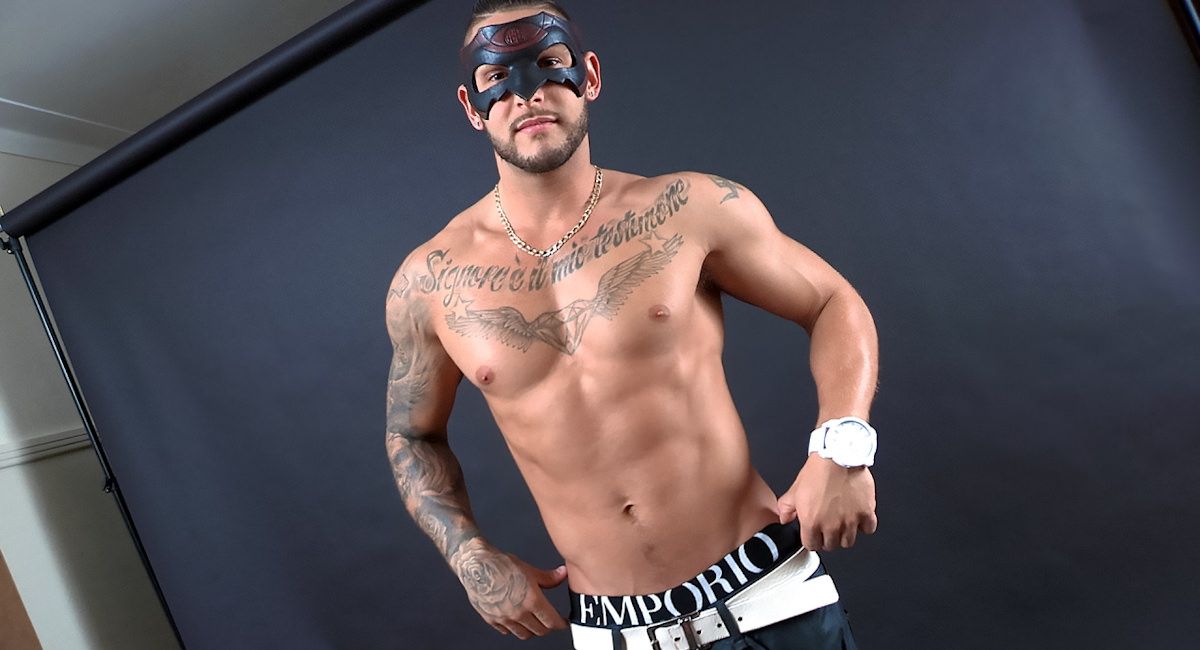 It's moving day! Some of my muscled friends came to help me move a couple of my old pieces of furniture out of the house. Zack, Calvin and Brad brought a buddy with them that I'd never seen before, Campo. It didn't take long for me to offer him an improvised masked scene on the spot while his 3 partners were taking a break in the backyard. This bad boy had fun performing and showing off. He made it very clear that he is not gay but he likes sex a lot. He let me touch his muscles... That's a start! Despite his young age, he's already had a lot of various experiences with older partners, group sex and so on. Besides going to the gym from time to time, he's a really good soccer player and likes to play hockey during the winter. He's been complimented often on his beautiful smile and gorgeous eyes. I personally complimented him on his beautiful uncut cock. The way he slowly stroked it, bringing the skin on top of his shaft, was exciting to watch. So that's reality shooting at its best. Please enjoy Campo!