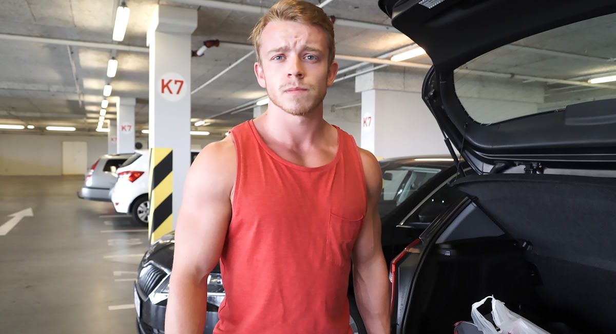 Our cameraman is always on the lookout for new potential talents. This time, he encountered young Marty as he was leaving the grocery store. We gently offered him money so we could have a look at his young muscular body. After a few minutes of negociation, he agreed as long as he wore the mask. So they went to our storage garage nearby and started taking pictures. The old concierge was a few meters away, painting the outside of the garage, which added to the excitement. Marty started stripping and his cock got stiffer and stiffer as our cameraman was taking pictures from every possible angles. We think the old concierge took a peek during our recording but we're not totally sure. One thing is certain, Marty is a very promising pornstar. Hope you'll like him as much as we did!