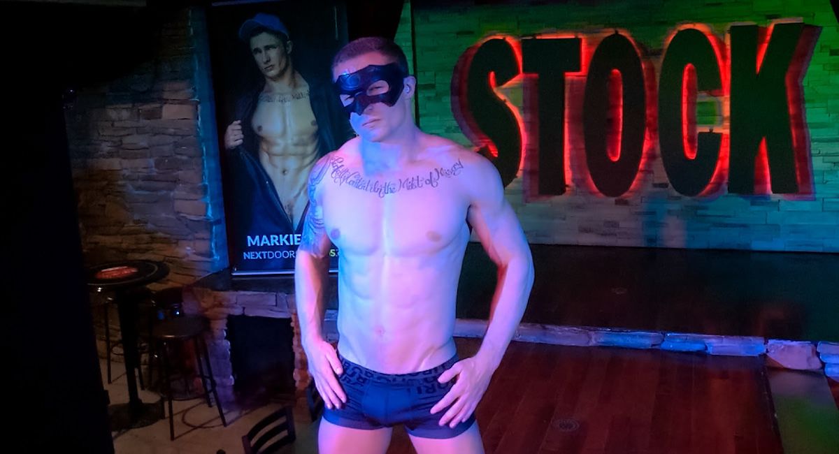 Markie More's first strip performance ever gathered crowds at Montreal's Stock bar. I was in the front row to see my idol in person. During Markie's strip show I started daydreaming about him being a Maskurbate model. He appeared before me with a mask on before taking it out and inviting me on stage with him. It was surreal, I found myself performing a muscle worship on Markie More! He grabbed me from behind, and pulled me against him as I was feeling his muscular body. I got on my knees, lowered his underwear and went down his shaft slowly as I wanted to remember this moment forever. Markie got excited. His dick was so stiff, it went down my throat effortlessly. Giving head to Markie More was awesome and I was so hungry for his load. He didn't disappoint me. I still remember thinking: 'holy crap, that's a whole fucking lot of sperm in my mouth!'. Eventually I came back from my daydreaming and saw Markie stripping in front of us all. He bent down and asked me: 'Aren't you Pascal from Maskurbate? You want to see me after?' :)